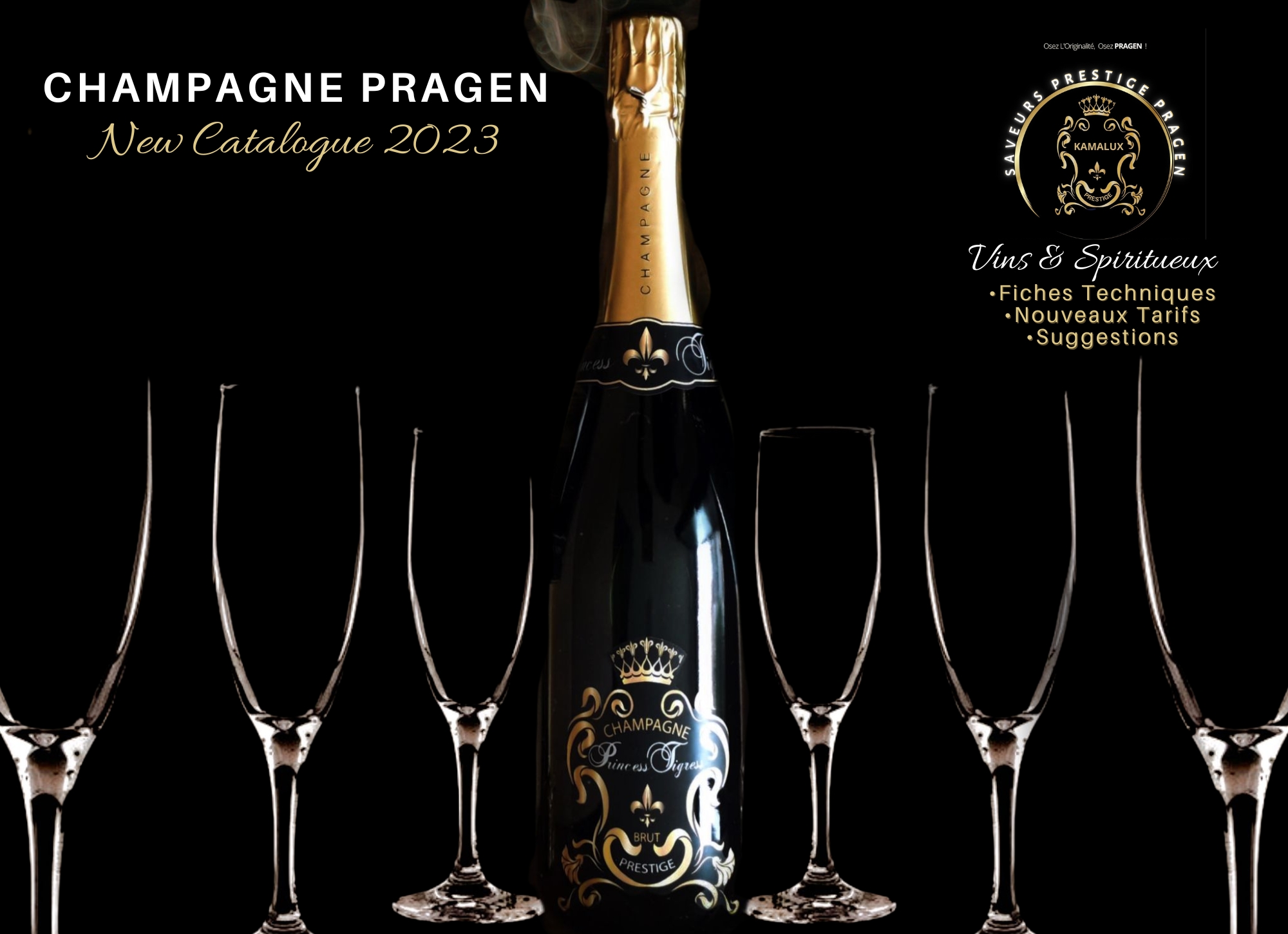 Suite 2 du Catalogue CHAMPAGNE PRAGEN ("CHAMPAGNE Brut Prestige "PRINCESS TIGRESS" Fiche Technique & Tarifs livraisons Franco)